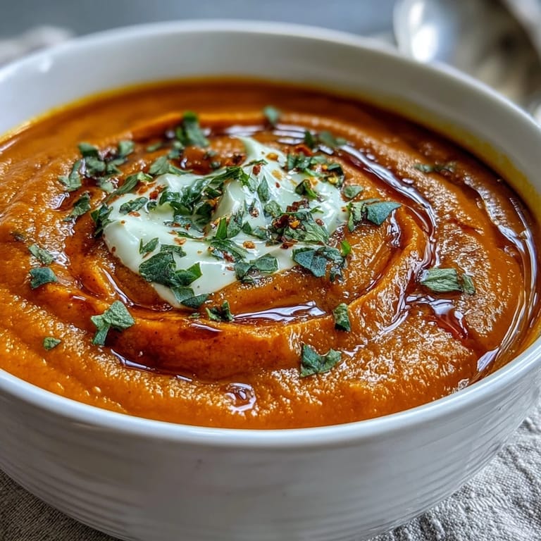 Sometimes I make a double batch and freeze half because this soup reheats beautifully, becoming just as silky and satisfying days later. I've also served it cold on warm days with a dollop of something tangy stirred in, and it becomes entirely different—lighter, more refreshing, like the same song in a different key. The garnishes matter more than you'd think; a handful of fresh coriander or a swirl of coconut cream makes people believe you spent your entire day in the kitchen.