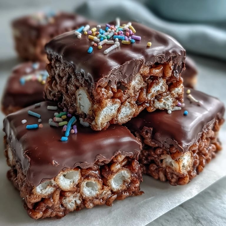 Save to Pinterest My friend once told me these reminded her of the treats her grandmother used to make, except fancier. She didn't realize they were the same base recipe until I showed her the box of cereal in my pantry. That's the magic of a chocolate coating, it turns something familiar into a memory people want to hold onto. Now every time I make them, I think about how a small upgrade can make someone feel special.