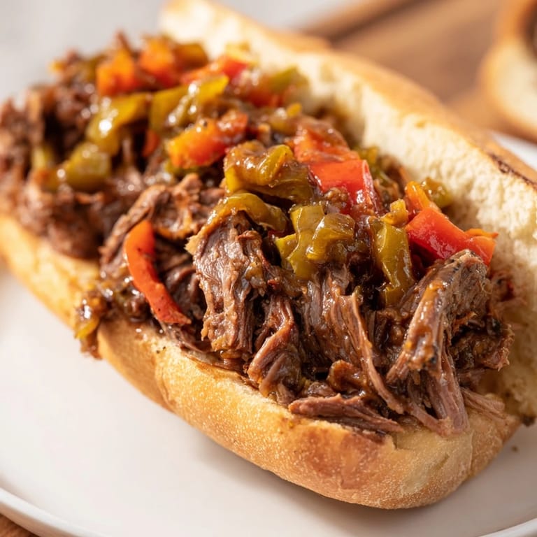 Save to Pinterest There's something about standing at the stove while a massive hunk of beef slowly transforms into something so tender it practically falls apart on a fork. The first time I made an Italian beef sandwich, I wasn't aiming for authenticity—I just wanted to understand why my coworker wouldn't stop talking about them. Four hours later, when that kitchen was fogged with savory steam and my apartment smelled like garlic and Worcestershire, I got it. Now I make them whenever I need comfort food that actually delivers.